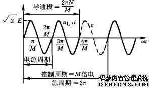 通断控制交流调压电路的电路结构与移相控制交流调压电路的完全一样,只是控制方式不同。通断控制的触发脉冲始终位于电源电压的过零处。它是将晶闸管作为开关,将负载与交流电源接通几个整周波,然后再断开几个整周波,通过改变接通周波数与断开周波数的相对比值来达到调节负载所获得的平均电压或平均功率的目的。图3-62示出了负载为电阻时的典型波形。由于采用这种特殊的控制方式,使得其电流谐波的情况与本章前面已分析过的其他电路情况有很大的不同。最明显的地方,就是在通断控制交流调压电路中将出现分数次的特征谐波。下面将以单相电阻负载的情况为例作简要介绍。